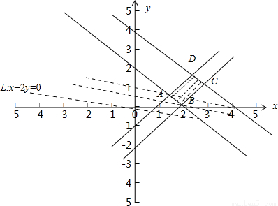 解答:解:作出不等式組所表示的平面區(qū)域,如圖所示的四邊形ABCD
