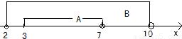 由圖得,A∪B={x|2<x<10},∁RA={x|x<3或x≥7},