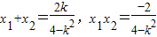 當(dāng)△>0時(shí),得(且k≠±2)…(7分)(未寫△扣1分)