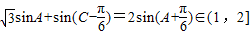 (Ⅱ)由求出的B的度數(shù),根據(jù)三角形的內(nèi)角和定理得到A+C的度數(shù),用A表示出C,代入已知的等式,利用誘導(dǎo)公式及兩角和的正弦函數(shù)公式化為一個(gè)角的正弦函數(shù),根據(jù)A的范圍求出這個(gè)角的范圍,由正弦函數(shù)的值域即可得到所求式子的取值范圍.