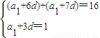 由a7+a8=16,a4=1得:,
