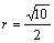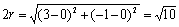 兩圓x2+y2=r2,(x-3)2+(y+1)2=r2外切、則正實數(shù)r的值是( )