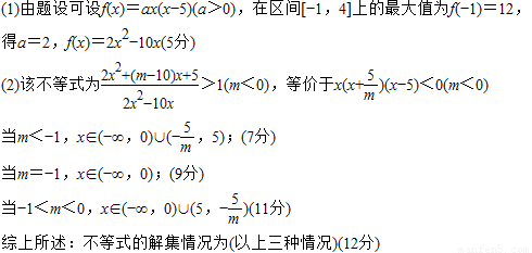 已知f(x)是二次函數(shù),不等式f(x)<0的解集為(0,5),且在區(qū)間[-1,4]上的最大值為12,