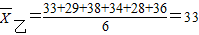 | 乙 | 33 | 29 | 38 | 34 | 28 | 36 |