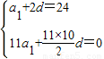 設(shè)等差數(shù)列{an}的前n項和為Sn,已知a3=24,S11=0.