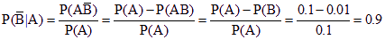 在一批電子元件中任取一件檢查,是不合格品的概率為0.1,是廢品的概率為0.01,已知取到了一件不合格品,它不是廢品的概率是多少?