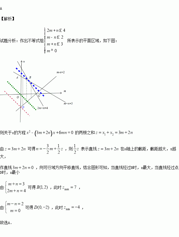的兩根之和的最大值和最小值分別是( )