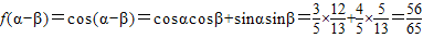 (2),且,,求出,然后求出sinα,sinβ,利用兩角差的余弦函數(shù)求f(α-β)的值.