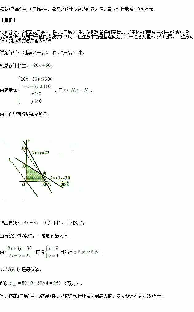 如何安排這兩種產(chǎn)品的搭載件數(shù),才能使總預(yù)計收益達(dá)到最大,最大收益是多少?