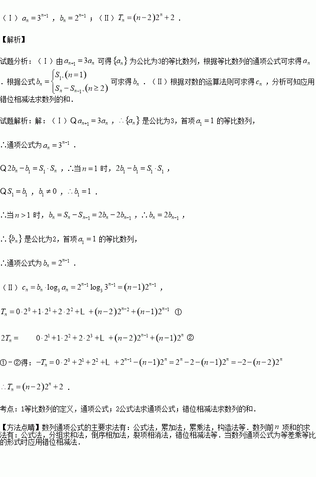 設(shè)數(shù)列{an}滿足:a1=1,an+1=3an ,n∈N*.設(shè)Sn為數(shù)列{bn}的前n項和, 已知b1≠0,2bn–b1=S1 Sn,n∈N*.