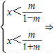 解答:解:(1)由f(x)<0得,|x-m|<mx,得-mx<x-m<mx,
