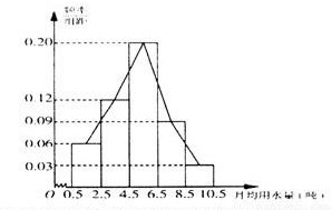 今年西南一地區(qū)遭遇嚴重干旱,某鄉(xiāng)計劃向上級申請支援,為上報需水量,鄉(xiāng)長事先抽樣調(diào)查了100 戶村民的月均用水量,得到這100戶村民月均用水量的頻率分布表如表:(月均用水量的單位:噸)