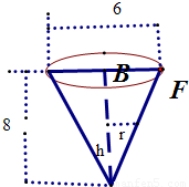 如圖,酒杯的形狀為倒立的圓錐,杯深8 cm .上口寬6cm , 水以20 cm3/s的流量倒入杯中,當(dāng)水深為4 cm時(shí),求水升高的瞬時(shí)變化率.![]()