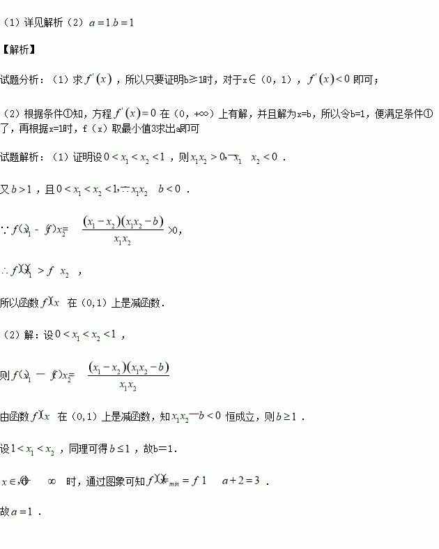 (1)若b≥1,求證:函數(shù)f(x)在(0,1)上是減函數(shù);