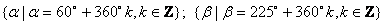 如圖所示,如按逆時(shí)針旋針,終邊落在OA位置時(shí)的角的集合是________;終邊落在OB位置時(shí)的集合是________.