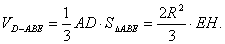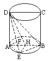 由V圓柱:VD-ABE=3π,得EH=R,可知H是圓柱底面的圓心,AH=R, DH= ∴∠EDH=arcctan
