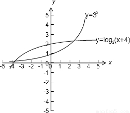 解答:解:畫出y=log2(x+4)與y=3x的圖象