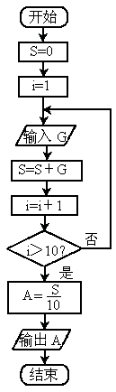 解:算法步驟如下: 第一步:令 S=0:第二步:令 i=1:第三步:輸入一個數(shù) G;第四步:令 S=S+G;第五步:令 i=i+1;第六步:若 i>10.退出循環(huán);若i≤10,轉到第三步;第七步:將平均數(shù) 第八步:輸出 A根據(jù)上述算法步驟.程序框圖如圖所示.