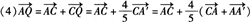 如圖,在平行六面體ABCD-A'B'C'D' 中,=c,P是CA'的中點(diǎn),M是CD'的中點(diǎn),N是CD'的中點(diǎn),點(diǎn)Q在CA'上,且CQ:QA'=4:1,用向量a、b、c表示以下向量,