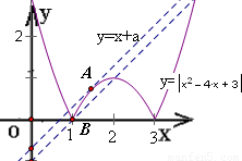 由y=x+a和y=-x2+4x-3,消去y,得x2-3x+3+a=0,