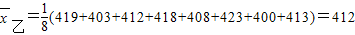 | 品種乙 | 419 | 403 | 412 | 418 | 408 | 423 | 400 | 413 |
