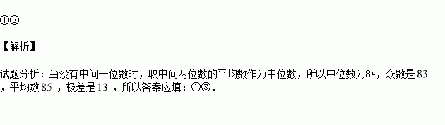①中位數(shù)為84;②眾數(shù)為85;③平均數(shù)為85;④極差為12;
