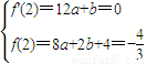 【答案】分析:(1)由題意可得f′(2)=0,f(2)=-,由此列方程組可解得a,b,從而可得f(x)解析式;