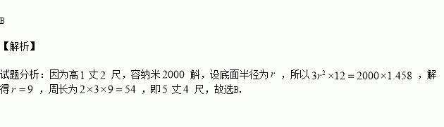 《九章算術(shù)》商功章有題:一圓柱形谷倉,高1丈2尺,容納米2000斛(1丈=10尺,斛為容積單位,1斛≈1.458立方尺,