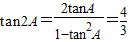 分析:(1)根據(jù)誘導(dǎo)公式化簡已知條件,得到cosA的值,根據(jù)cosA的值大于0且A為三角形的內(nèi)角,得到A為銳角,所以利用同角三角函數(shù)間的基本關(guān)系求出sinA的值,進(jìn)而求出tanA的值,然后把所求的式子利用二倍角的正切函數(shù)公式化為關(guān)于tanA的式子,把tanA的值代入即可求出值;