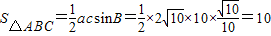 (2)由cosB的值和B的范圍,利用同角三角函數(shù)間的基本關(guān)系求出sinB的值,根據(jù)三角形的內(nèi)角和定理及誘導(dǎo)公式得到sinC與sin(A+B)相等,利用兩角和的正弦函數(shù)公式化簡sin(A+B),把各自的值代入求出sin(A+B)的值,即為sinC的值,再由c,sinA及sinC的值,利用正弦定理求出a的值,然后由a,c及sinB的值,利用三角形的面積公式即可求出三角形ABC的面積.