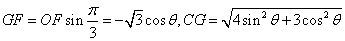 | 解:(1)在平面AOB內(nèi)過(guò)B作OD的垂線,垂足為E,如圖 因?yàn)槠矫鍭OB⊥平面COD,平面AOB∩平面COD=OD, 所以BE⊥平面COD, 故BE⊥CO 又因?yàn)镺C⊥AO, 所以O(shè)C⊥平面AOB, 故OC⊥OB 又因?yàn)镺B⊥OA,OC⊥OA, 所以二面角B-AO-C的平面角為∠COB, 故 (2)當(dāng) 當(dāng) 過(guò)F作OD的垂線,垂足為G,連接CG, 則∠CGF的補(bǔ)角為二面角C-OD-B的平面角, 在Rt△OCF中,CF=2sinθ,OF=-2cosθ, 在Rt△CGF中, 所以 因?yàn)?IMG style="VERTICAL-ALIGN: middle" border=0 src="http://thumb.zyjl.cn/pic1/upload/papers/g02/20111104/201111041557452341060.gif">, 故 所以二面角C-OD-B的余弦值的取值范圍為 |