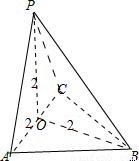 解答:解:由三視圖可知:原幾何體是一個如圖所示的三棱錐,點O為邊AC的中點,且PO⊥底面ABC,OB⊥AC,PO=AC=OB=2.