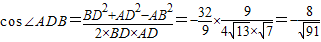 精英家教網(wǎng)如圖,在△ABC中,D是邊AC上的點,且AB=AD,2AB=