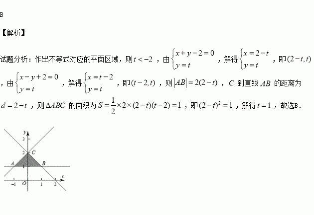 表示的平面區(qū)域的面積為1,則實(shí)數(shù)t的值為( )