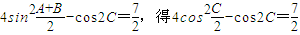 【答案】分析:(1)由A+B+C=π,可求的cosC,進(jìn)而求出C.