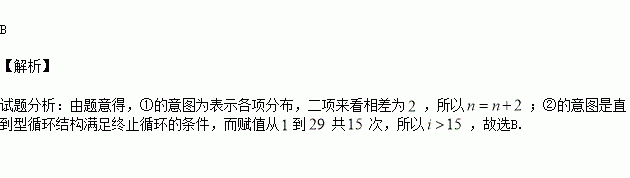 的值的一個程序框圖,則圖中執(zhí)行框內(nèi)①處和判斷框中的②處應填的語句是( )