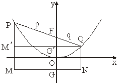 設(shè)準(zhǔn)線(xiàn)MN交y軸于G,過(guò)P作PM⊥MN于M,過(guò)Q作QN⊥MN于N,再過(guò)Q作