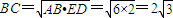 如圖,AB是圓O的直徑,點C在圓O上,延長BC到D使BC=CD,過C作圓O的切線交AD于E.若AB=6,ED=2,則BC=