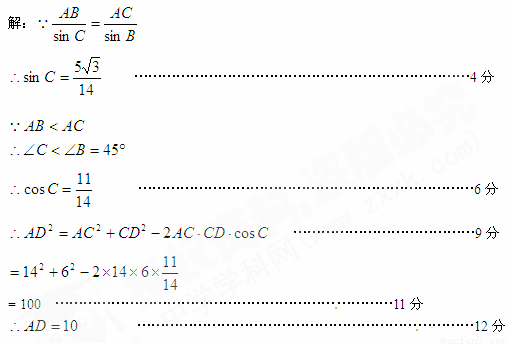 在△ABC中,已知B=45°,D是BC邊上的一點,AB=5