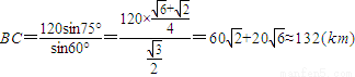 (本小題滿分12分) 如圖,A,B,C是三個(gè)汽車(chē)站,AC,BE是直線型公路.已知AB=120 km,∠BAC=75°,∠ABC=45°.有一輛車(chē)(稱甲車(chē))以每小時(shí)96(km)的速度往返于車(chē)站A,C之間,到達(dá)車(chē)站后停留10分鐘;另有一輛車(chē)(稱乙車(chē))以每小時(shí)120(km)的速度從車(chē)站B開(kāi)往另一個(gè)城市E,途經(jīng)車(chē)
