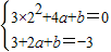 【答案】分析:先對函數(shù)進行求導,根據(jù)函數(shù)f(x)x=2取得極值和x=1的切線斜率為-3,列出方程組即可求出a、b的值.