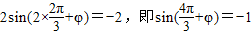 解答:解:(1)由最低點(diǎn)為得A=2.