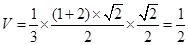 一個四棱錐的三視圖如圖所示,其中主視圖是腰長為1的等腰直角三角形,則這個幾何體的體積是 ( )