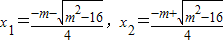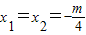 ①當(dāng)m=±4 時(shí),△=0,兩根為