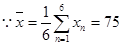 | 成績xn | 73 | 76 | 76 | 77 | 72 |