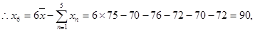 在某次測驗中,有6位同學的平均成績?yōu)?5分.用xn表示編號為n(n=1, 2,…,6)的同學所得成績,且前5位同學的成績如下: