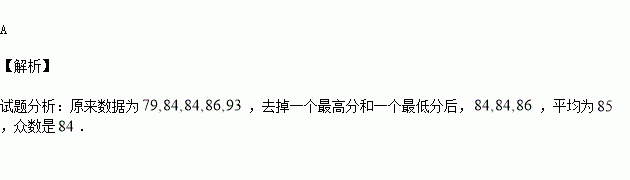 如圖是2015年某大學(xué)自主招生面試環(huán)節(jié)中,七位評委為某考生打出的分?jǐn)?shù)的莖葉圖,去掉一個最高分和一個最低分后,所剩數(shù)據(jù)的平均數(shù)和眾數(shù)依次為( )
