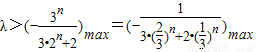 假設存在λ,使Cn+1>Cn(n∈N*)3n+1+(-1)n(2n+2+2)•λ>3n+(-1)n-1(2n+1+2)•λ[(-1)n(2n+2+2)-(-1)n-1(2n+1+2)]•λ>3n-3n+1=-2•3n(-1)n(3•2n+1+4)•λ>-2•3n