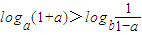 ∴l(xiāng)oga(1+a)==>0,