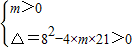 解答:解:由題意可得,對任意實(shí)數(shù)x,都有mx2+8mx+21>0恒成立,